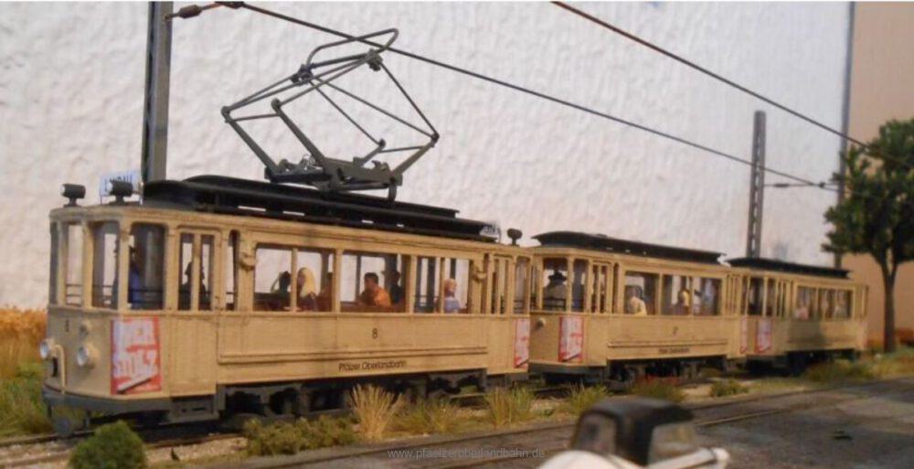 Die Wagen waren beige lackiert und trugen die Aufschrift „Pfälzer Oberlandbahn“.